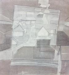 Abstract Houses Date Created 1985 Work Medium acrylic on canvas Dimensions 23 in. x 24 in. CR Number CR.AM.720 Provenance private collection