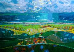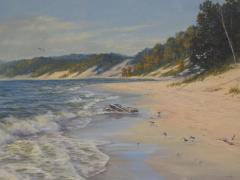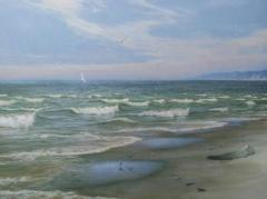 Lake Michigan Moonlight Work Medium oil on hard board Dimensions 24 in. x 18 in. CR Number CR.AM.3969 Thesaurus of Geographic Names Location Michigan, Lake Provenance private collection Harry and Marge Worst Subjects Lake Michigan Water Landscape