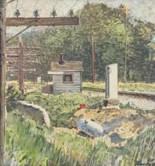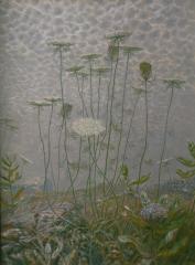 Queen Anne with a Barn in the Distance Work Medium oil on hard board Dimensions Unknown CR Number CR.AM.2169 Provenance private collection René (Merizon) and David Ludema Beth Merizon Subjects Floral Barn