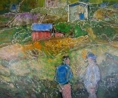 Dickering Work Medium acrylic on board Dimensions 16 in. x 20 in. CR Number CR.AM.194 Provenance private collection John Altena Chantal Merizon Van Heest Subjects Landscape Barn