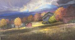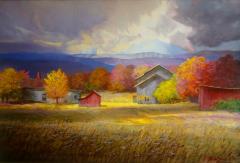 Dramatic Skies Over Fall Landscape Date Created 1995 Work Medium acrylic on board Dimensions Unknown CR Number CR.AM.2139 Provenance private collection Muriel Zandstra Subjects Landscape Architecture Barn
