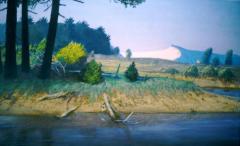 Girl Picking Wild Flowers with Woods in the Background acrylic on stretched canvas CR.AM.843