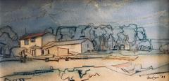 The Lonely Whistle Date Created 1958 Work Medium heavy oil Dimensions 16 1/4 in. x 19 in. CR Number CR.AM.4058 Provenance private collection Sidney Jansma Jr. Exhibitions Armand Merizon, A Retrospective, Grand Rapids Art Museum, 10/25/86 - 1/25/87