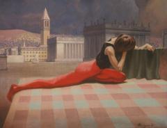 Nostalgia for Classicism or Red Leotards Date Created 1961 Work Medium oil Dimensions 16 in. x 20 in. CR Number CR.AM.147 Provenance private collection Sidney Jansma Jr. Chantal Merizon Van Heest Rolland Alleban Exhibitions Owls Nest, Lake Macatawa, 1989. Fountain Street Church, 10/2010