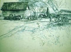 O'Connor's Barn Work Medium acrylic on board Dimensions 20 in. x 20 in. CR Number CR.AM.2024 Provenance Amway Corp Collection Subjects Barn Architecture