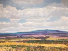 Out on the Range Date Created 1988 Work Medium acrylic on board Dimensions 14 in. x 18 in. CR Number CR.AM.2059 Provenance private collection Brenda Mattsen Subjects Landscape Barn