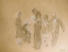 The Reading Date Created 1987 Work Medium charcoal and white oil on masonite. Dimensions 14 in. x 18 in. CR Number CR.AM.266 Provenance Chantal Merizon Van Heest